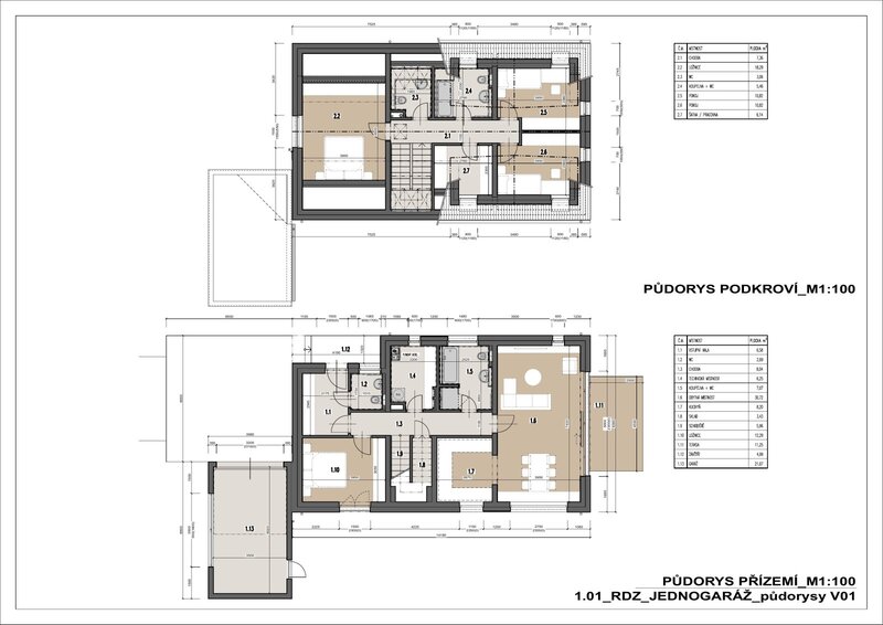 3 ložnice(18,29m2 10,82m2, 10,82m2), šatna/pracovna(6,14m2).