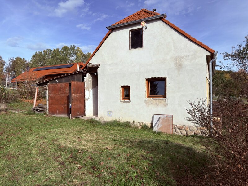Dům nabízí dispozici 2+kk s plánovaným rozšířením o podkroví, dále