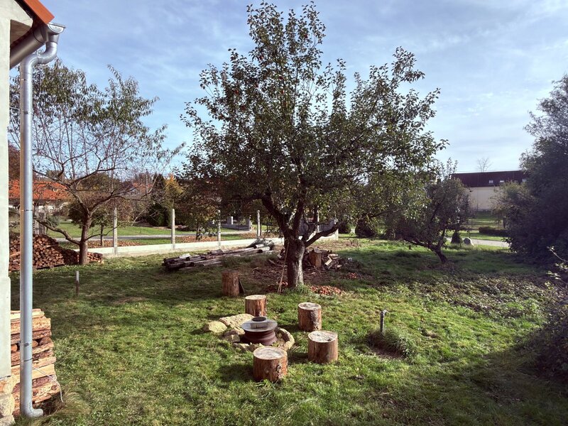 - pozemek: 716 m² – zahrada se vzrostlými stromy (jabloň), oplocená,