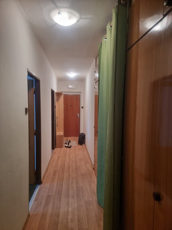 V chodbě jsou vestavěné skříně, které nabízejí dostatek úložného