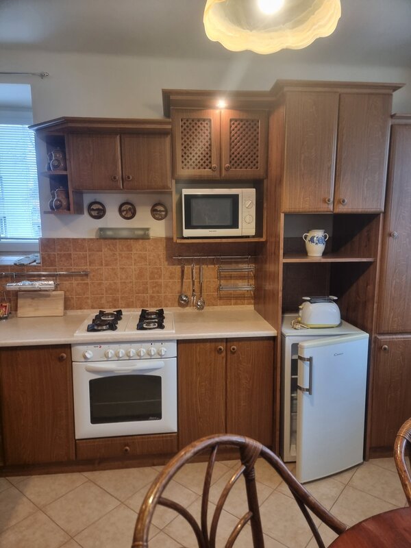 Kuchyně je vybavena základním vybavením včetně lednice, s možností
