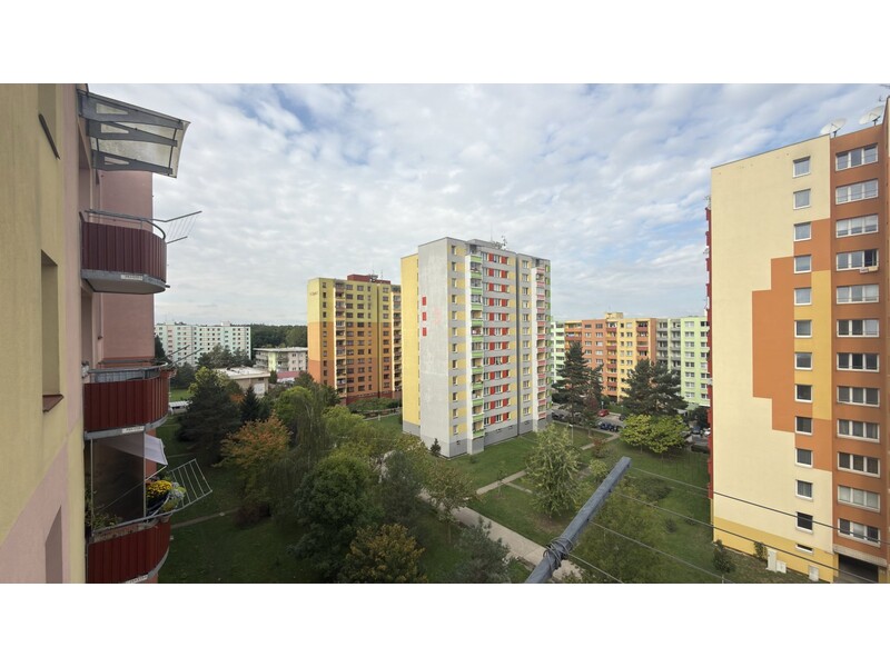 je umístěný v 7. patře panelového domu s výtahem a orientací na